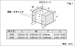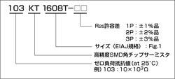 | 103KT1608T | 10kΩ | ±1% | 3435k±1% | 約0.9 | 約5 | 4.5 | −40〜+125 |